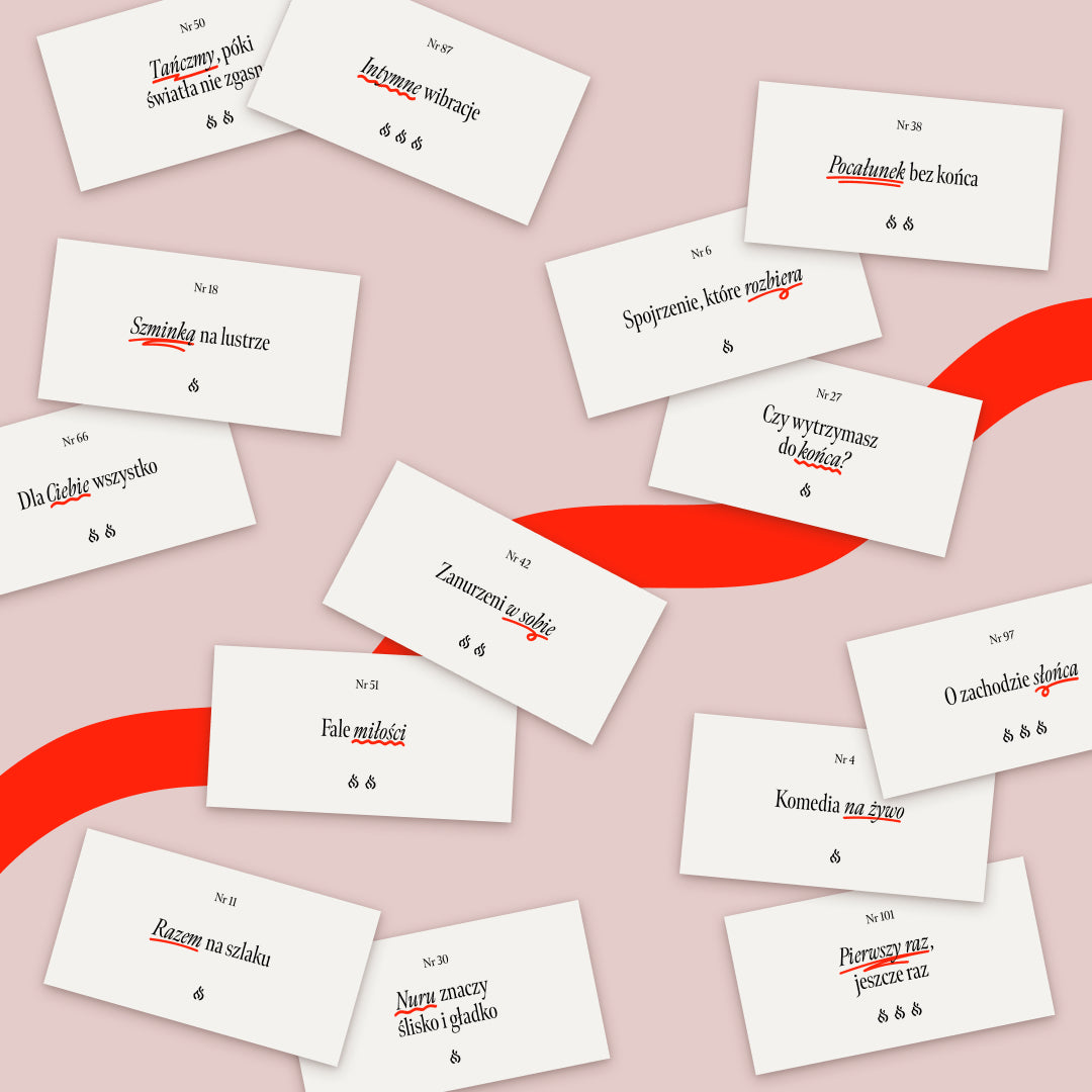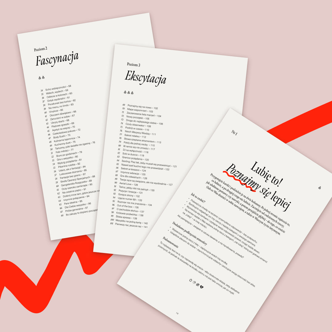 Ostatni poziom to pełna szczerość, intymność i kreatywność, której wcześniej mogliście się po sobie nie spodziewać. Nie ma tematów tabu. Są pytania, wyznania i scenariusze, które pozwalają Wam odkrywać siebie na nowo. Bo nic nie łączy mocniej niż̇ wspólna gotowość́, by pójść tam, gdzie wcześniej brakowało odwagi.